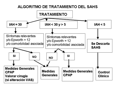 El objetivo del tratamiento del SAHS, es la mejoría o desaparición de la sintomatología clínica y la corrección de las alteraciones fisiopatológicas, es decir, la desaparición de las apneas y de las hipopneas, siendo eficaces aquellos tratamientos que permitan la permeabilidad de la vía aérea superior. La aproximación al tratamiento del SAHS deberá ser multidisciplinar y se puede dividir en los siguientes apartados:
