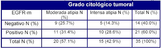 Tabla 5. EGFR en el tumor primario según el grado de atipia citológicap= 0.096 (NS)